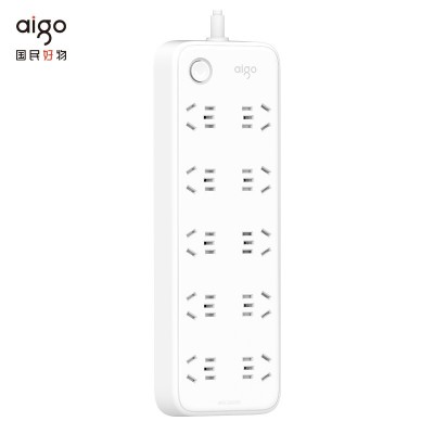 爱国者(aigo)插座 插排/插线板/排插/插板/接线板/拖线板 10位总控儿童保护门45MM大孔间距 5米AC0T01