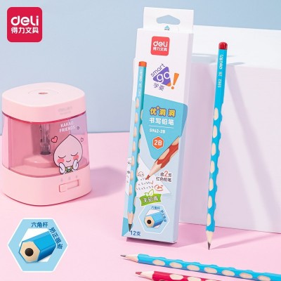 得力洞洞铅笔2b学习用品三角杆12支(含2支红色铅笔)-2B-S962