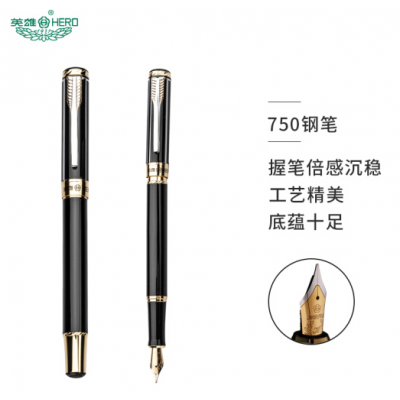 首页 > 办公用品 > 文具 > 英雄(HERO)钢笔黑色铱金钢笔墨水笔明尖 750