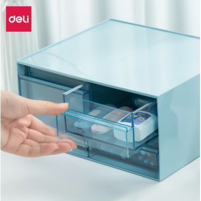 首页 > 办公用品 > 文具 > 得力三格桌面收纳盒 抽屉式办公室用品文具文件分类多层储物盒子防尘整理盒 蓝色PK112