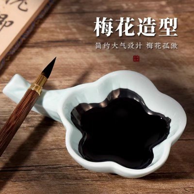 首页 > 办公用品 > 文具 > 梅花墨碟 文房四宝初学者入门学生书法练习陶瓷水碟盛墨舔笔笔搁毛笔架多功能便捷砚台
