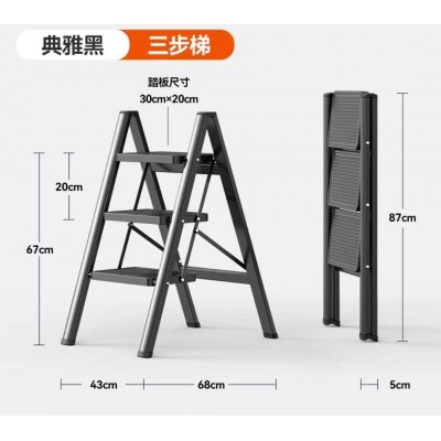首页 > 建筑建材 > 五金附件 > 折叠小梯子安全伸缩凳踏板爬梯室人字内多功能升降楼梯 典雅黑【花架梯三步】