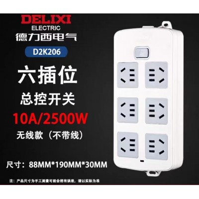 德力西无线排插 6位5孔接线板带开关 D2K206-6位