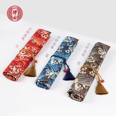 一得阁多色云舒浪卷毛笔卷帘布艺笔袋复古文艺书法用品收纳口袋 9笔袋
