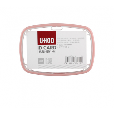 优和(UHOO) 6625 纯雅系列亚克力透明硅胶工作证胸卡学生工牌门禁公交证件卡套 横式粉红色 6个/盒装