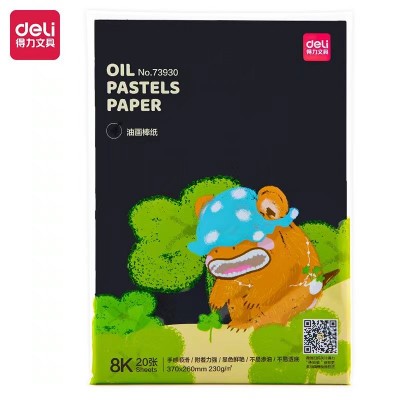 得力73930 8K绘画纸 卡纸 油画棒纸230g(黑色)(20张/袋)