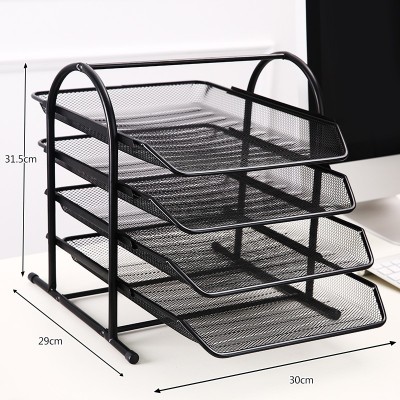 金属铁网四层文件盘 杂志文件收纳架资料整理栏文件栏