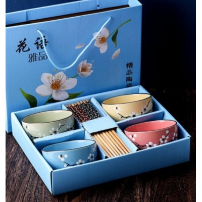 首页 > 用具 > 其他厨房用具 > 雪梅碗筷套装陶瓷碗具礼盒开业伴手礼套碗礼品碗(4件套)