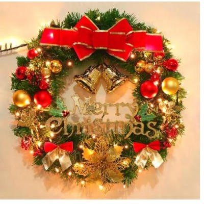 圣诞装饰圣诞花环圣诞节礼物场景布置圣诞挂藤花环30CM红结花环 带灯电池款