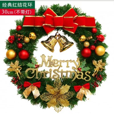 圣诞装饰圣诞花环圣诞节礼物场景布置圣诞挂藤花环30CM红结花环 不带灯款