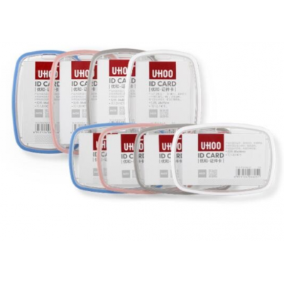 优和(UHOO) 6626 纯雅系列亚克力透明硅胶工作证胸卡学生工牌门禁公交证件卡套 竖式粉红色 6个/盒装
