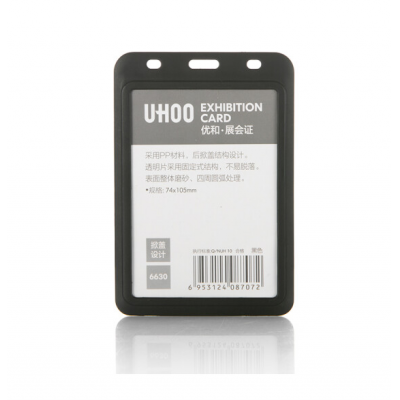优和(UHOO) 6630 加厚PP工作证卡套单面胸牌员工证公司胸牌学生证【大号内页:74*105mm】黑色竖款6个/盒装