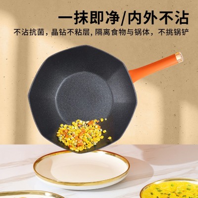韩尔哆咪赫精铁防锈麦饭石不粘耐磨家用平底电磁炉通用八角炒锅32cmHR-8TC32 爱马仕橙32cm