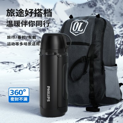 飞利浦保温壶不锈钢真空旅行壶大容量广口户外便携车载保温瓶暖水壶1.5L AWP2625BK