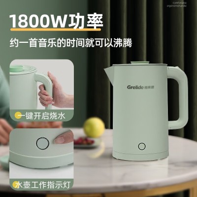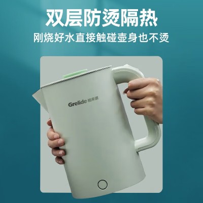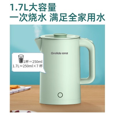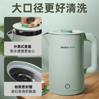 格来德 (Grelide) 电热水壶1.7L家用烧水壶 电水壶无缝内胆双层锁温防烫热水壶 1.7L-分离式壶盖-D2818A-