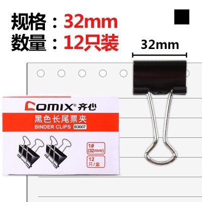 齐心 B3607黑色长尾票夹 3# 32mm 12只/盒