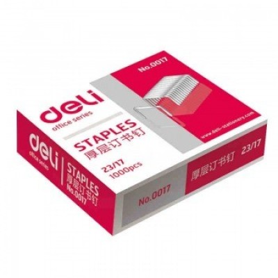 得力(Deli) 0017 17号厚层订书钉23/17装订120页 1000枚/盒