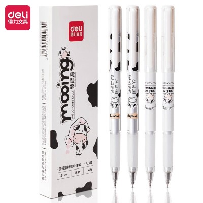 得力A581学生中性笔0.5mm加强型针管(黑)(4支/盒)