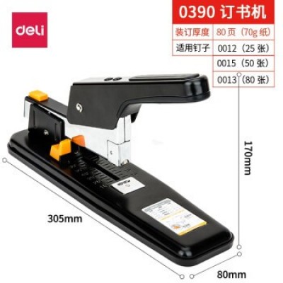 得力(deli) 订书机加厚重型订书器大订书机厚层大型长臂大码 0390 可订80页 颜色随机