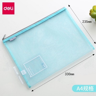 得力(deli) A4文件袋透明网格拉链袋档案袋办公资料袋试卷票据收纳袋 网纱拉边袋 A4蓝色_5544