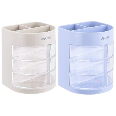 得力(deli)9152 多功能笔筒办公商务塑料笔筒 笔座创意时尚 三层办公 颜色随机