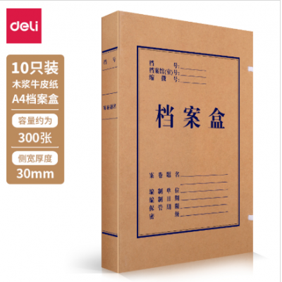 首页 > 办公用品 > 文具 > 得力(deli)10只30mm纯浆牛皮纸档案盒 久存耐用文件资料收纳盒 加厚党建材料整理盒 办公用品5923
