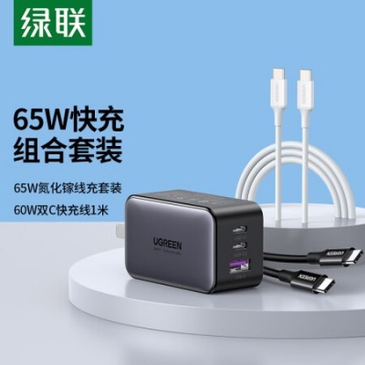 绿联(UGREEN)60518+50653 ype-C数据线双头 PD60W快充线+氮化镓GaN65W充电器套装