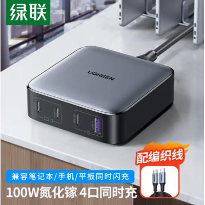 绿联(UGREEN)15151/CD328充湃100W氮化镓充电器套装 Type-C桌面插线板