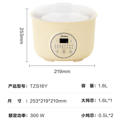 美的(Midea)电炖锅电炖盅宝宝煲辅食锅婴儿煮粥煲汤锅TZS16Y/TGS20Y 电炖盅TZS16Y