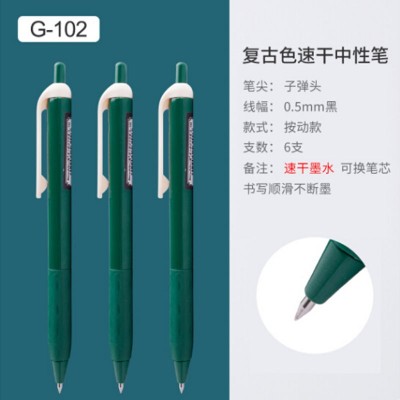 白雪(snowhite)按动速干中性笔0.5mm速干油墨学生用按动水笔黑色签字笔 子弹头 6支松绿色外观黑墨水G-102