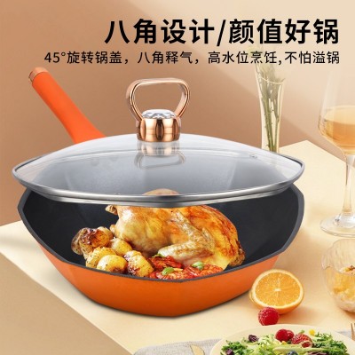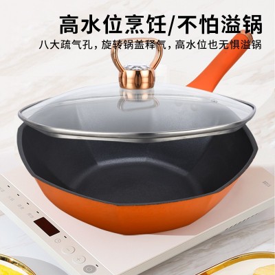 韩尔哆咪赫精铁防锈麦饭石不粘耐磨家用平底电磁炉通用八角炒锅32cmHR-8TC32