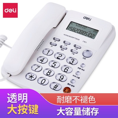 首页 > 通信设备 > 普通电话机(不包含移动电话) > 得力(deli)787 免电池来电显示座机 时尚免提办公家用电话机 透明按键固定电话 耐磨不易褪色(素雅白)