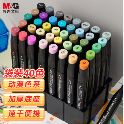 首页 > 办公用品 > 文具 > 晨光(M&G)APMT3504 40色双头酒精性速干马克笔 袋装油性动漫款水彩笔 纤维笔头