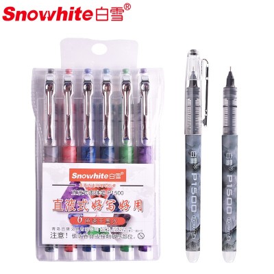 白雪(snowhite)直液式考试走珠笔 速干彩色笔中性笔学生用笔全针管签字笔P1500 6支吊袋 六色墨水