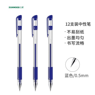 三木(SUNWOOD)效率王系列 0.5mm蓝色经典子弹头中性笔签字笔水笔 12支盒 P9