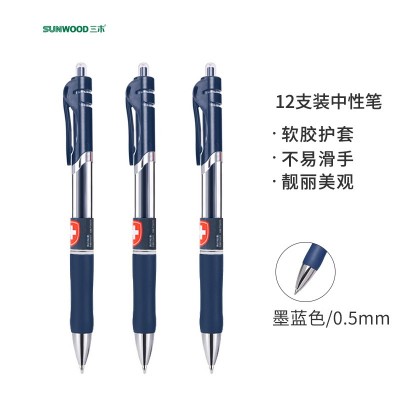 三木(SUNWOOD)效率王系列 0.5mm墨蓝色按动中性笔医生处方笔12支盒 P5