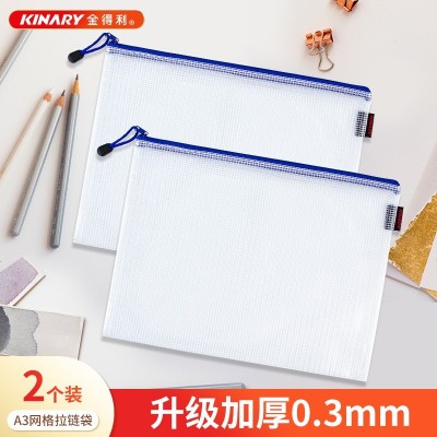 金得利 2只 A3/8K升级加厚网格拉链袋文件袋资料袋学生试卷袋整理收纳袋 FB8805
