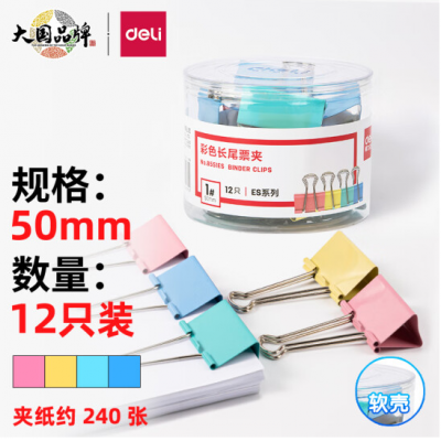 得力 8551ES 1#彩色长尾票夹筒装(混)(12只/筒)