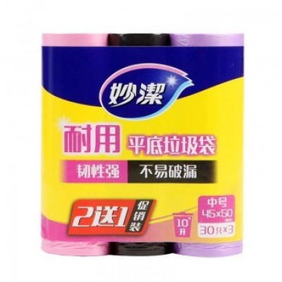 妙洁(MIAOJIE)MBGRMC2+1 耐用平底垃圾袋 3卷促销装 中号 90只