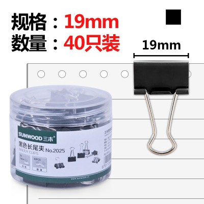 三木(SUNWOOD) 19mm黑色长尾夹长尾票夹 40只筒 新老包装随机 2025