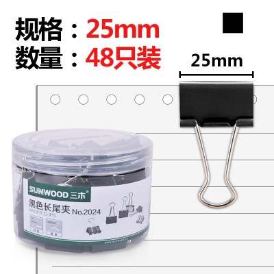 三木(SUNWOOD) 25mm黑色长尾夹金属燕尾夹票据夹长尾票夹 48只筒 新老包装随机 2024