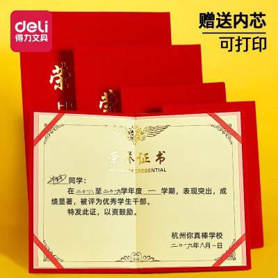 得力(deli) 绒面荣誉证书颁奖得奖获奖状外壳聘书 12K荣誉证书(210x148mm) 7578