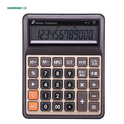 三木(SUNWOOD) 名匠系列 中号宽屏真人语音桌面计算器财务办公通用 MC41