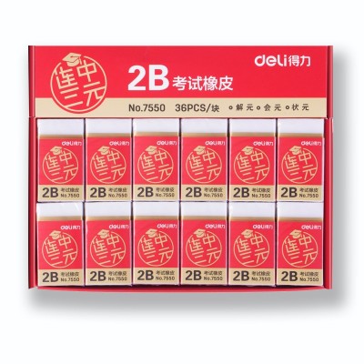 得力7550橡皮擦(白) 连中三元系列学生2B考试白色橡皮擦