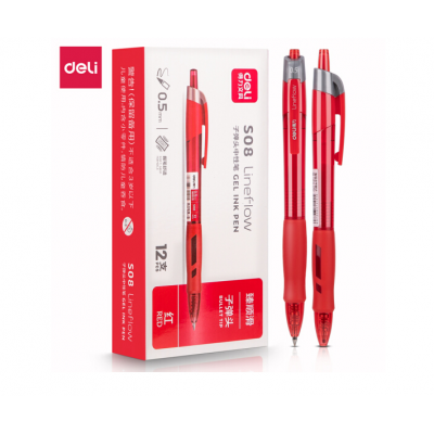 得力(deli)臻顺滑按动中性笔签字笔 办公用品 0.5mm子弹头 12支/盒S08红