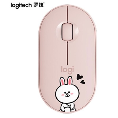 罗技(Logitech)Pebble 鹅卵石轻薄型静音鼠标 蓝牙无线双模 静音 便携 时尚鼠标 LINE FRIENDS可妮兔
