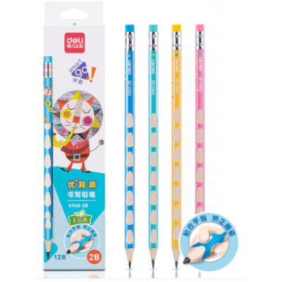 得力洞洞铅笔2b学习用品三角杆 12支-2B-S960