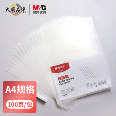 首页 > 办公用品 > 文具 > 晨光(M&G)文具A4透明二页文件套 L型办公文件夹 资料保护袋防尘防水 100片/包