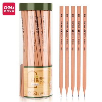 得力58117-HB原木书写铅笔(原木色)(50支/筒)