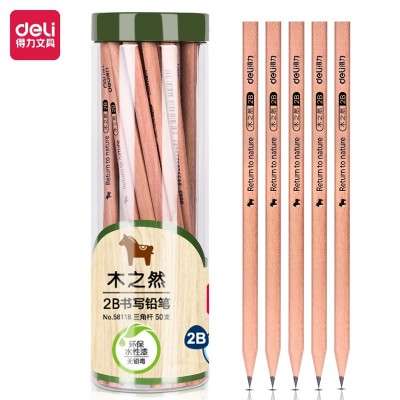 得力58118-2B原木书写铅笔(原木色)(50支/筒)